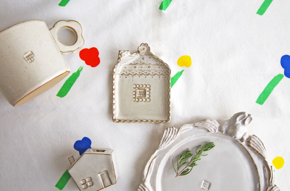三角お屋根に煙突のついた可愛らしいお家が小皿に。新作の「家のピクルス小皿」がキエリ舎さんより届きました。
