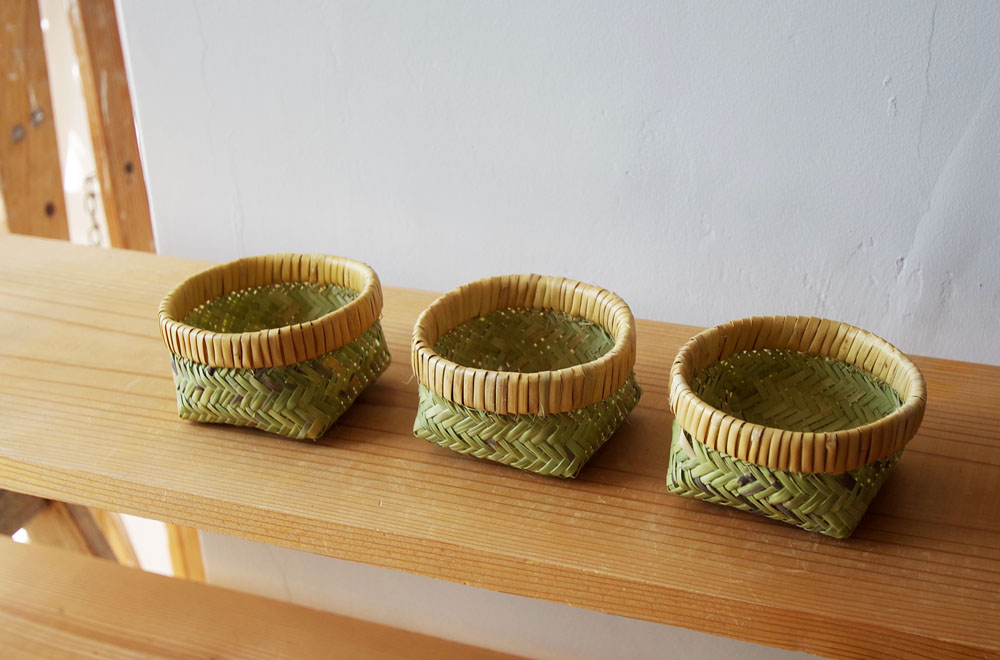 上から軽く押してみると、手が跳ね返るほどの弾力性を持つ、鈴竹のかご。