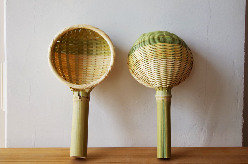 育てる楽しみもある、青竹の「みそ お玉ざる」。名前の通り、みそを溶くときに使うざるのこと。