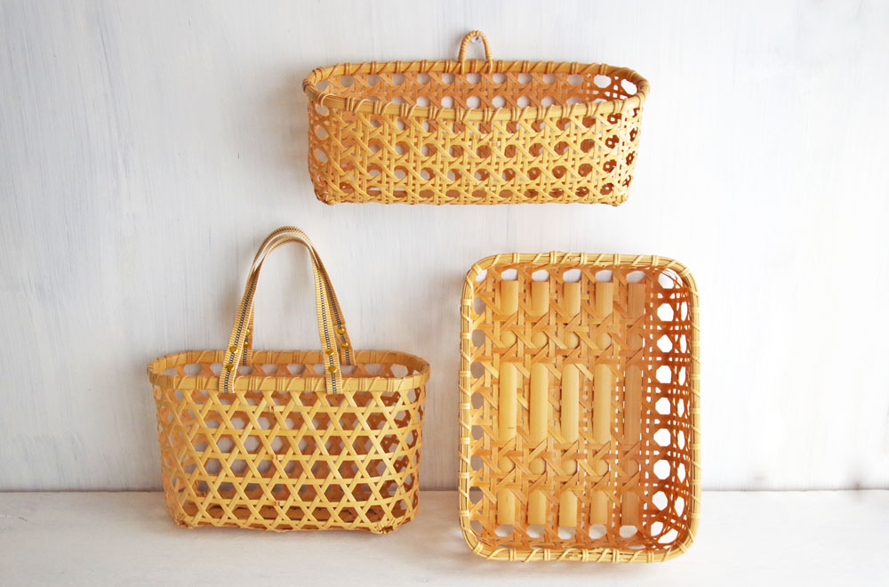 「八つ目かご」は、八角形を作る八つ目編みという編み方で、全体を編み上げて作られています。細い竹を編んで作られていますが、とても丈夫で、たくさん入れても安心。