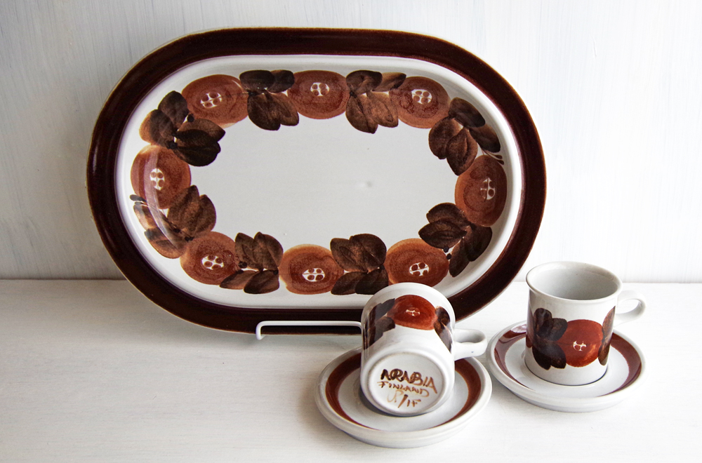 フィンランド、ARABIAのヴィンテージ「ROSMARIN(ロスマリン)」、コーヒーカップ&ソーサーとオーバルプレートが届きました。