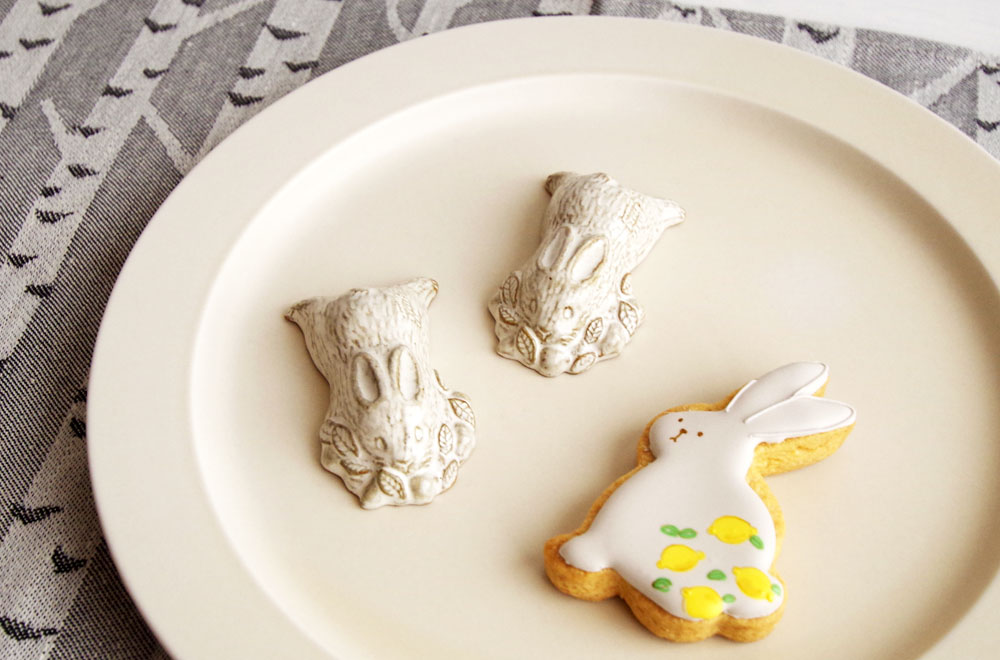 今回の展示会に合わせて、キエリ舎さんが当店限定の「檸檬うさぎのカトラリーレスト」を作ってくださいました。