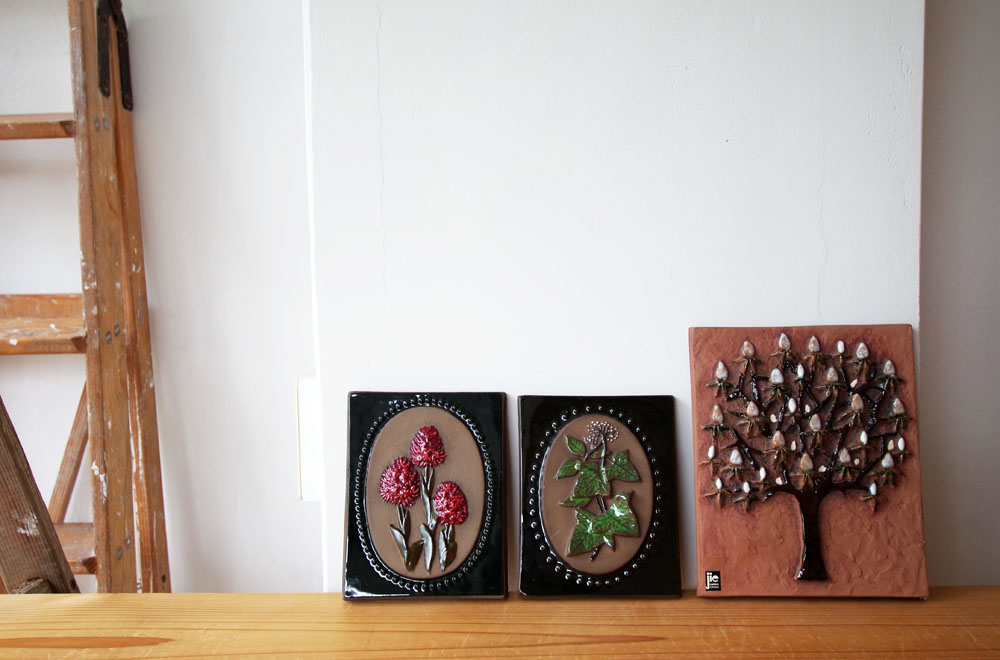 1940年創業のスウェーデン「Jie Gantofta(ジイ・ガントフタ)」社のお花をモチーフにした陶板。