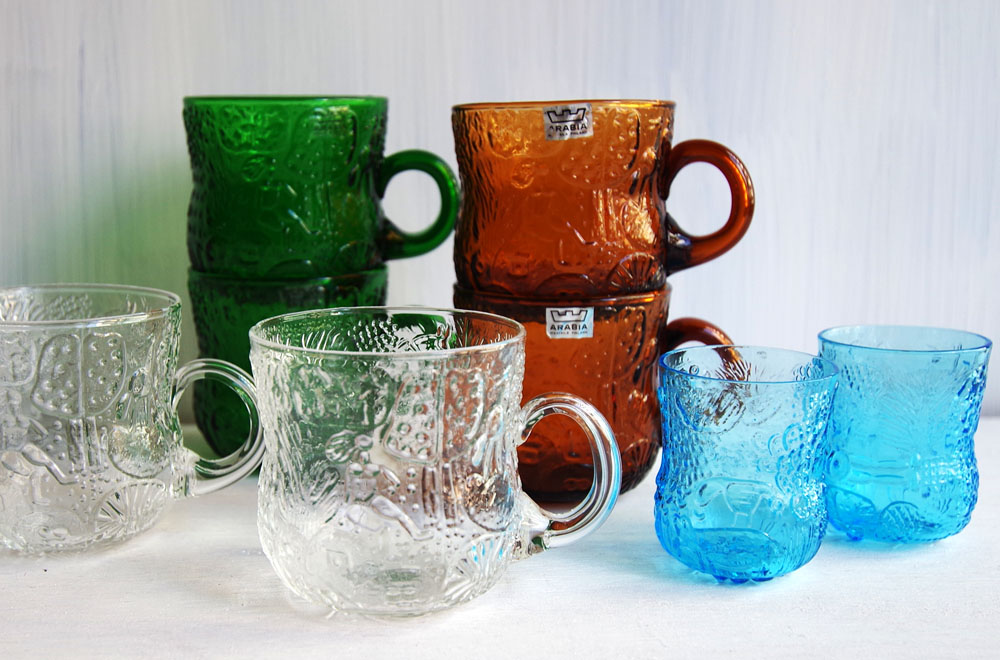 ARABIAのシールがキレイに残っている、状態の良いものもあります。また、持ち手付きのカップはあまり見かけない、珍しいヴィンテージガラスです。
