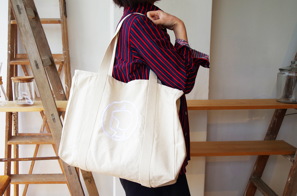 コットン100%素材のキナリ素材のトートバッグ。