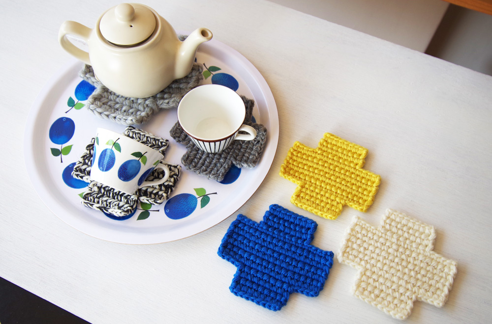 ひとつひとつ丁寧に手編みされており、食卓風景にぬくもりを加えてくれる作品です。