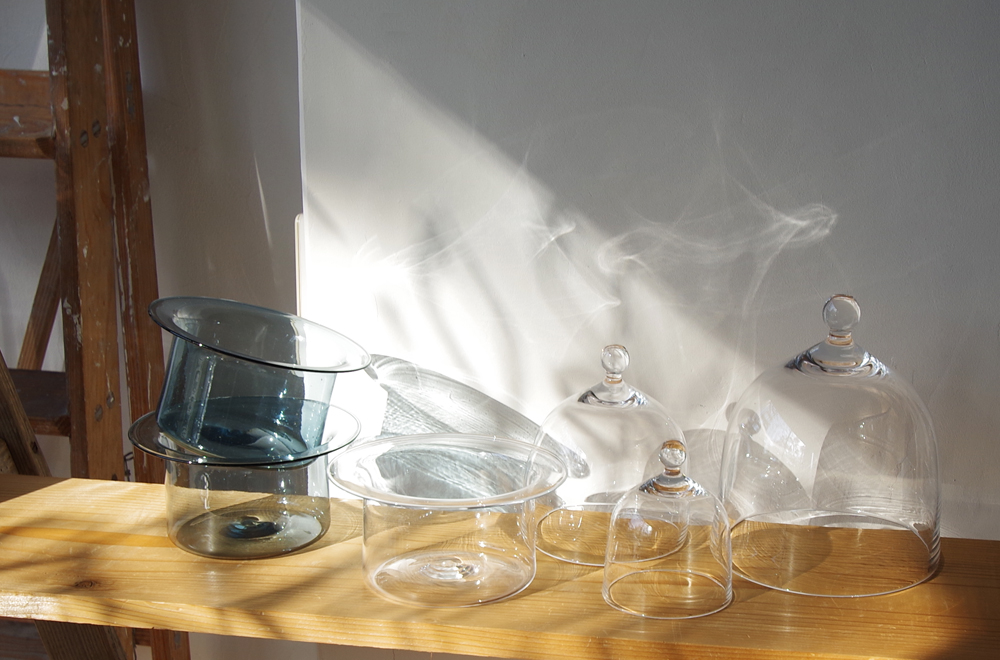 ひとつひとつ丁寧に手吹きで作られたガラスは、透明度が高く、冬でも不思議と温かみを感じる作品。