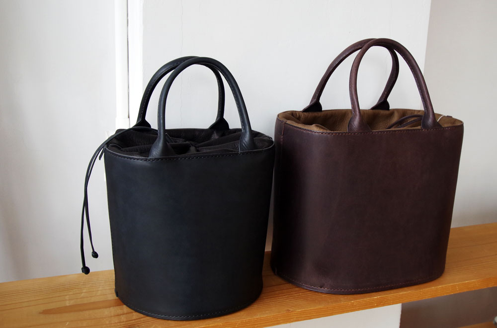 巾着の部分は豚革を使って作られています。国産の牛革と豚革を贅沢に使ったトートバッグ。
