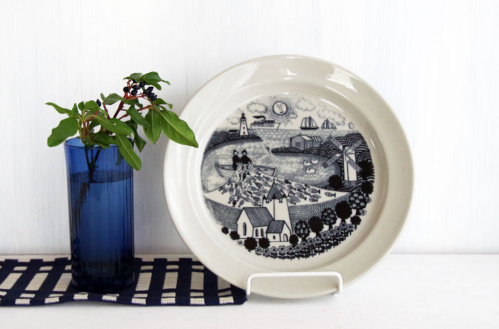真ん中には船に乗って、魚を網で捕っている姿も描かれており、フィンランドの海辺の風景をデザインしたものでしょうか。