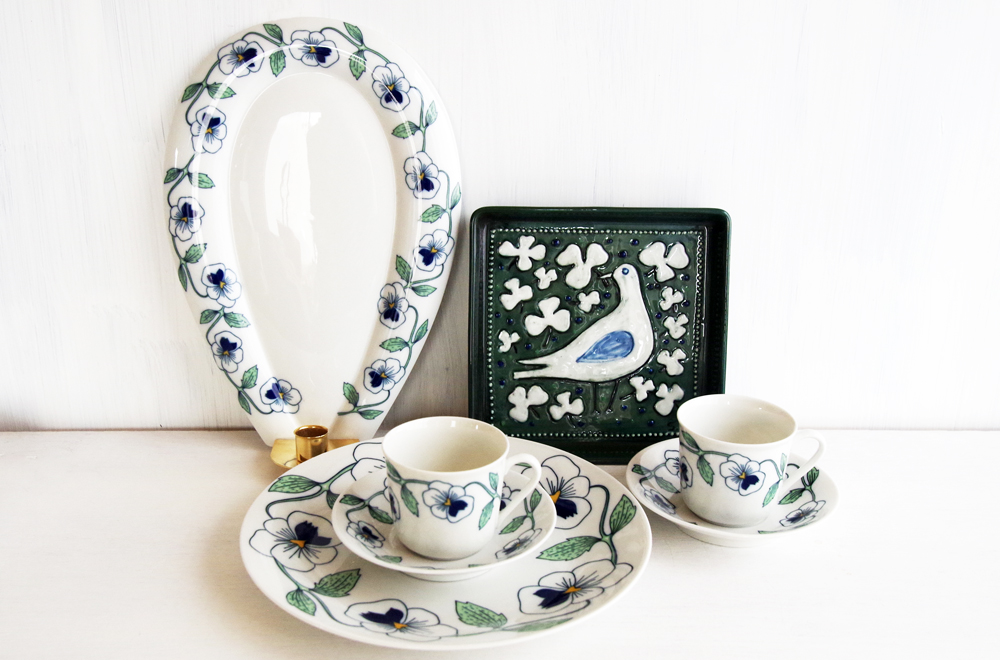 「Rorstrand(ロールストランド)」社で製造されていた「Sylvia(シルヴィア)」シリーズと鳥の壁掛け。
