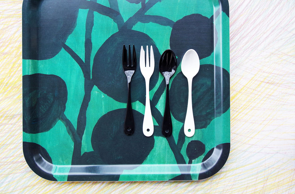 ホワイトとブラック、それぞれティースプーンとケーキフォークが揃っています。