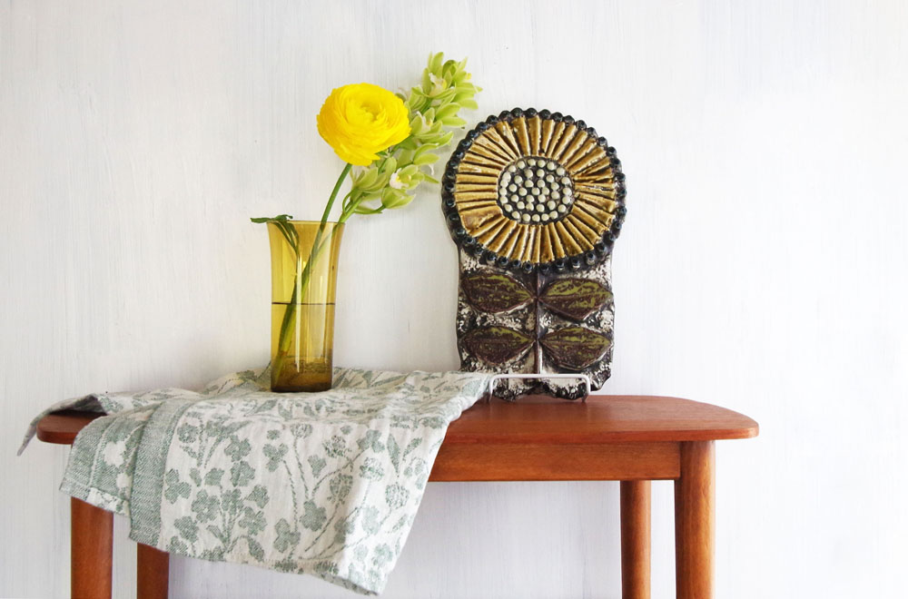 「Lisa Larson(リサ・ラーソン)」がデザインを手掛けた「Solros(ひまわり)」の陶板が届きました。