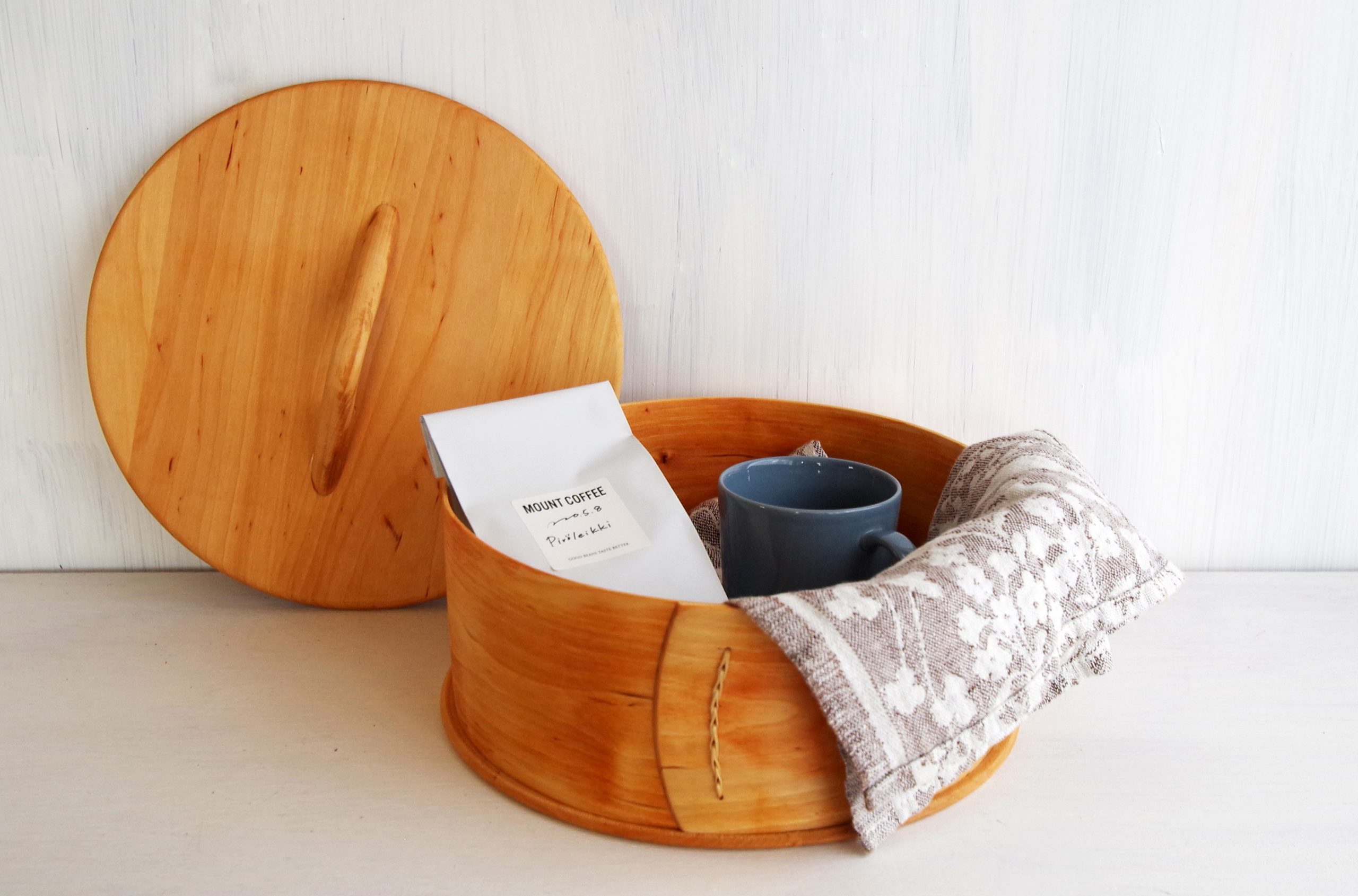 スウェーデンの職人がハンドメイドで作る、木製のふた付きラウンドボックス。