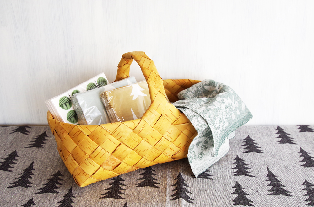 フィンランドの白樺工芸作家「Galina(ガリーナ)」さんの作品、横長のかごも届いています。