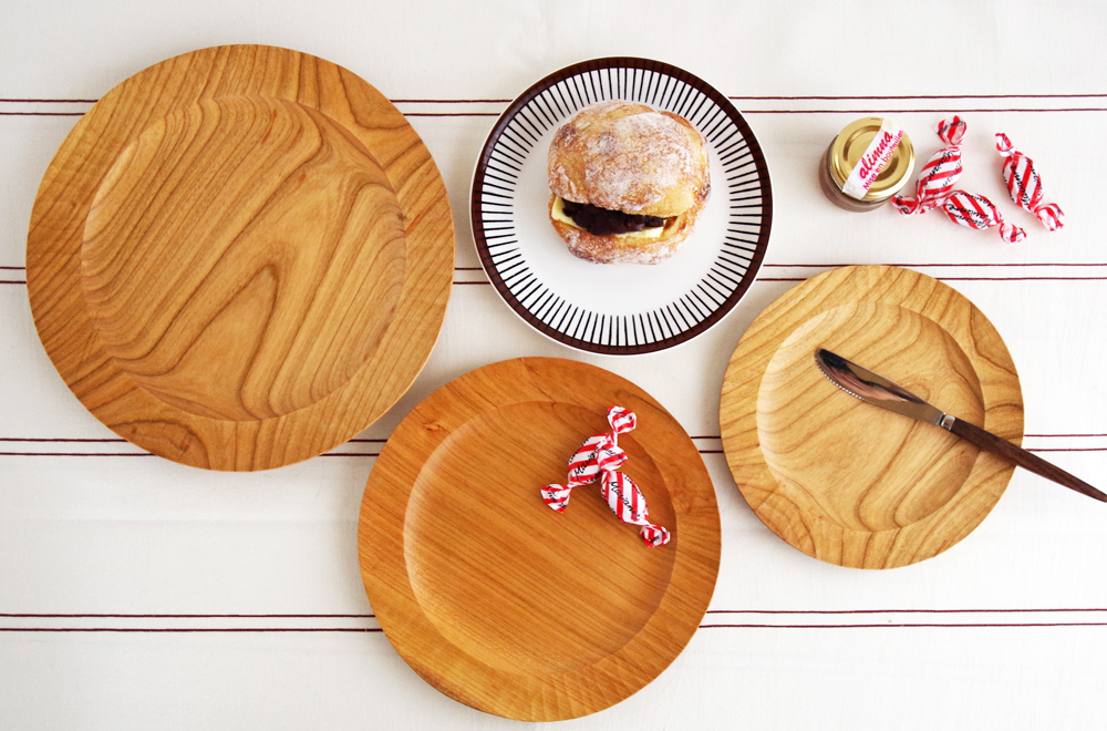 毎回人気のリムが付いたパン皿。3サイズ(直径17㎝、20㎝、24㎝)揃って登場しています。