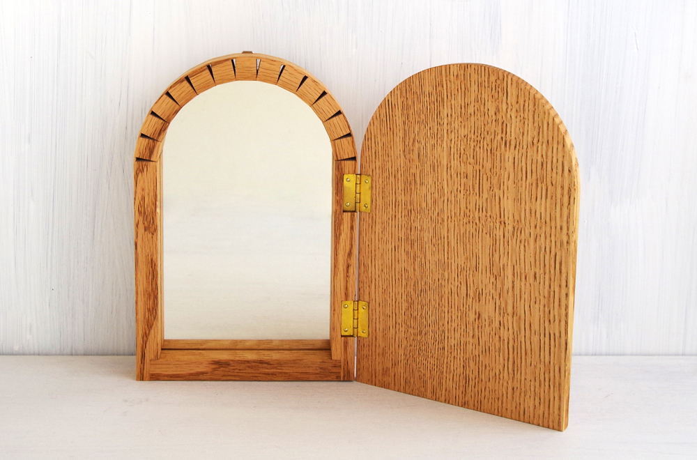 木製フレームのミラーならではの、温もりの空間をお楽しみいただける作品です。