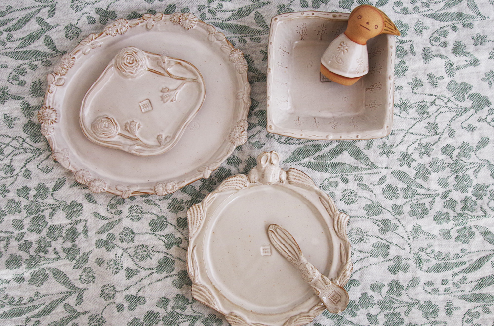 人気の「すすきうさぎの和菓子トレー」や「ラナンキュラスの小皿」、「シロツメクサの花かんむりの皿」など。