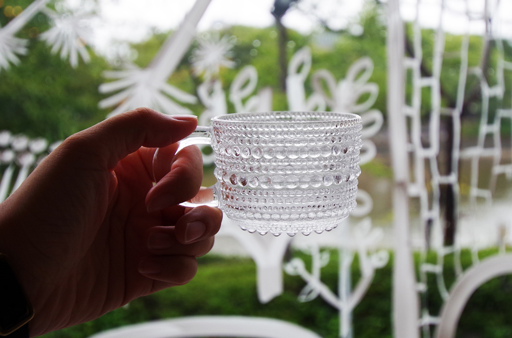 フィンランド「Nuutajärvi(ヌータヤルヴィ)」社の「Kastehelmi(カステヘルミ)」シリーズ。カップと直径8.5cmプレートがたくさん登場しています。