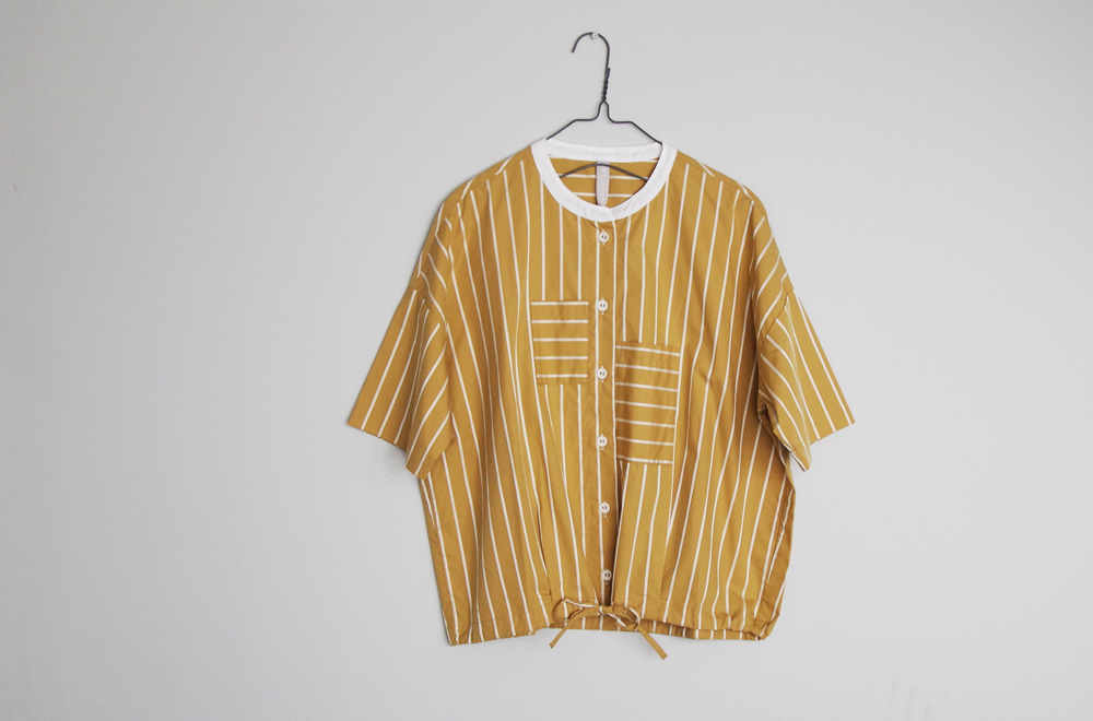 さらっとした気持ちいい着心地で、裾のリボンやネックのパイピングが可愛らしいシャツ。