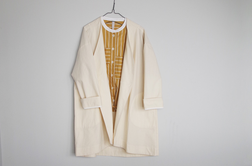 シンプルなアイボリーカラーは、中のインナーで、様々なコーディネートを楽しめます。