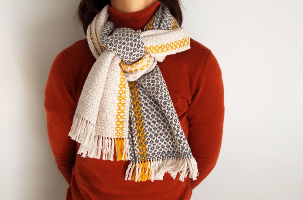 様々なパターン、様々なカラー。幅の細いマフラーも届いています。