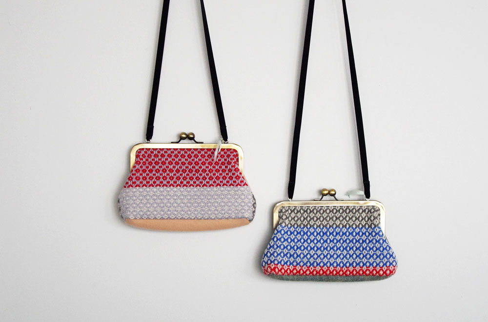 八重樫さんの展示会では、ショール、マフラー、マットの他にもがま口バッグなどの作品も登場しています。