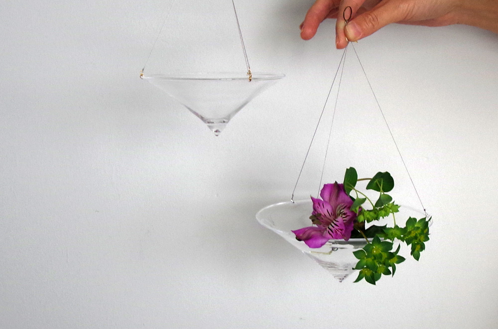 写真はガラスの透け感が美しく、水を入れて出来る影もまた幻想的で素敵な「ニワタヅミ(吊)」。