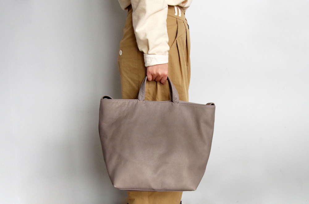 柔らかくて、しっとりとした触り心地が特徴の「ソフトレザー」を使ったバッグ。こちらは「2WAYトートバッグ」です。