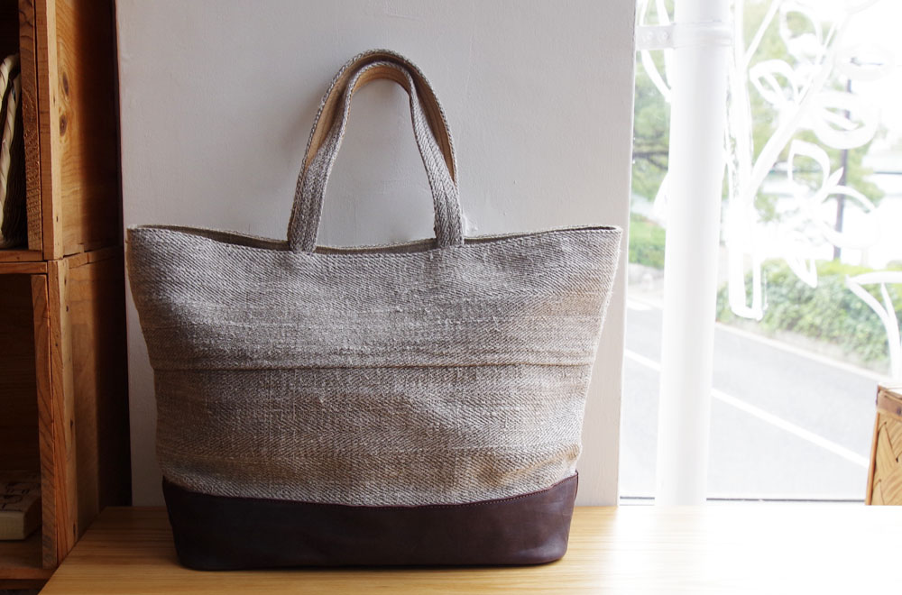 アンティークリネンの粗さとシックな革の組み合わせが、カジュアルにも上品にもお使い頂けるトートバッグです。