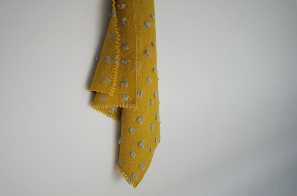先日ご紹介した「bird」ストールよりも小さなスクエアタイプの「bird スクエアスカーフ」。