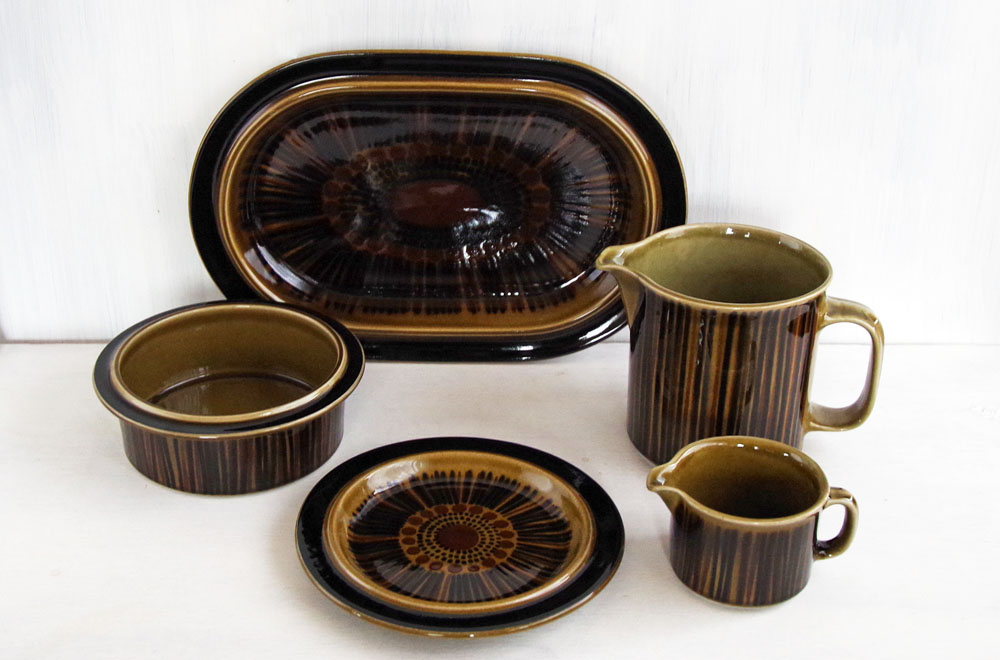 Gunvor Olin-Gronqvis(グンヴァル・オリン・グラングヴィスト)によるデコレートデザインは、ブラウンを基調とした落ち着いた雰囲気ですが、光の当たり具合によって鮮やかに感じたり、艶感も楽しめる作品です。