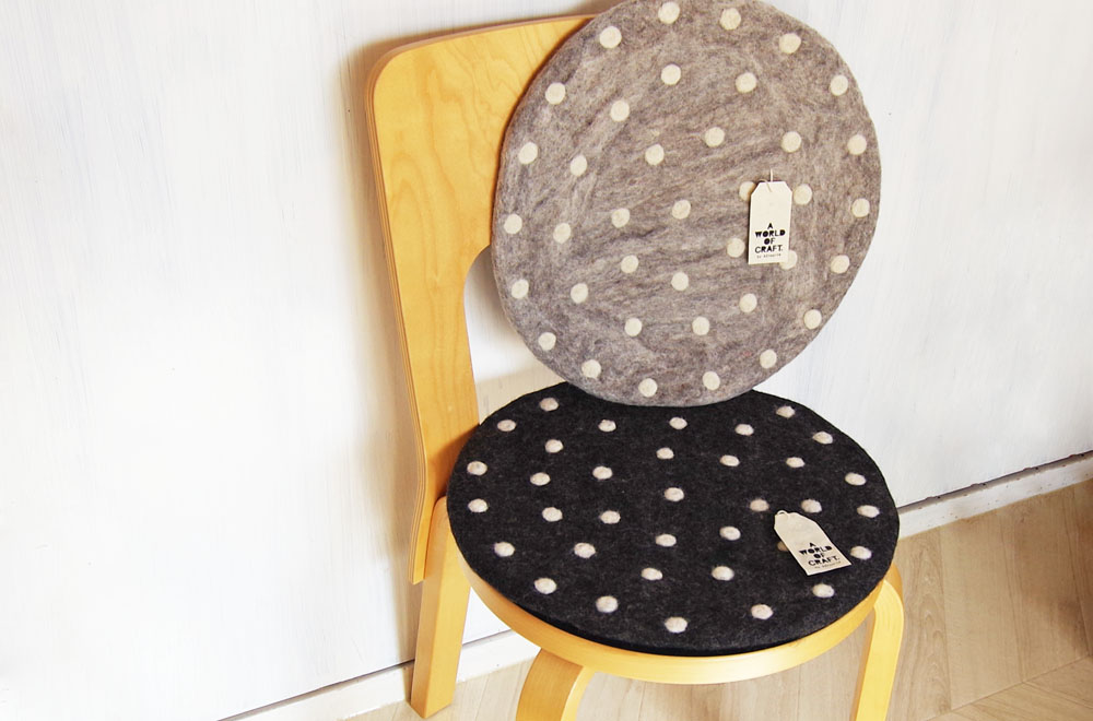 ウールを圧縮したフェルト素材で、ふっくらと厚みがあり、優しい座り心地。