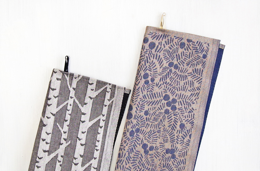 フィンランド「LAPUAN KANKURIT(ラプアンカンクリ)」の人気デザイン「KATAJANMARJA(ジュニパーベリー)」柄と「KOIVU(白樺)」柄。