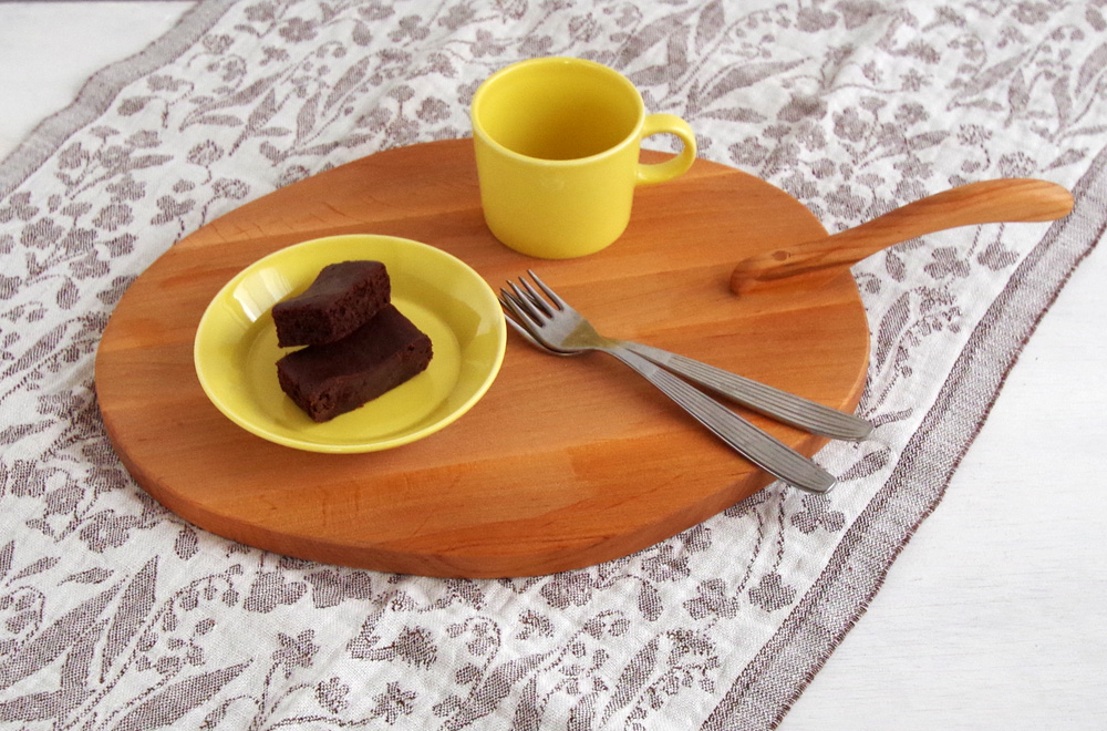 カップとお菓子を乗せてトレイのように使ってみたり、お料理やお菓子などを直接乗せてプレートとして使ってみたり。もちろん、チーズやパンなどのカッティングボードにも。