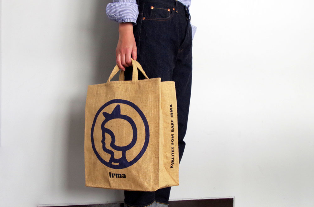 「Irma(イヤマ)」スーパーマーケットの紙袋のデザインをそのままジュートにしたデザインで、日本企画・日本限定発売です。