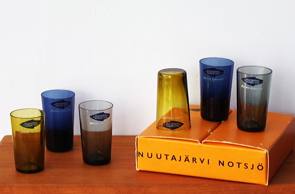 1954年にフィンランドの人気デザイナー「Kaj Franck(カイ・フランク)」によってデザインされた「1153」のショットグラス6個セット(箱付き)。