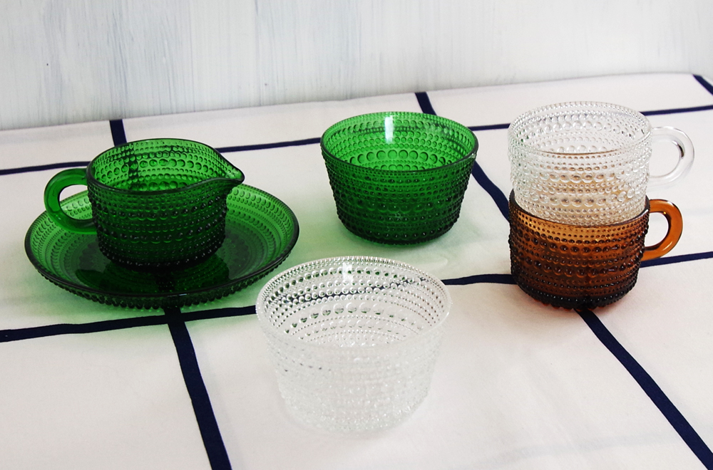 フィンランド「Nuutajarvi (ヌータヤルヴィ)」の「Kastehelmi(カステヘルミ)」と「iittala(イッタラ)」の「Kuusi(クーシ)」。