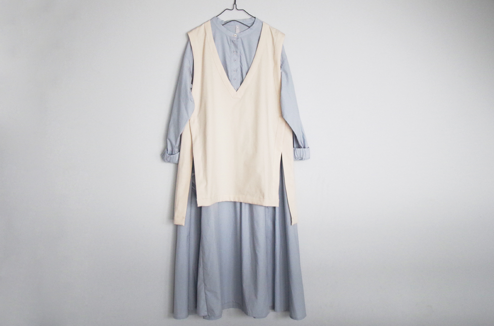 キレイめにもカジュアルにも使えるワンピースとベスト。着回しもきくので、色々な組み合わせで楽しめます。