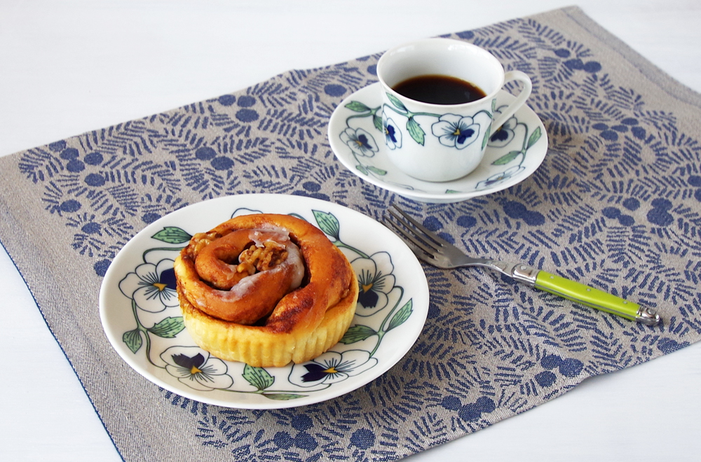 鮮やかなグリーンと濃いネイビーで描かれたパンジーのデザインは、今の季節にはぴったりな爽やかな印象です。