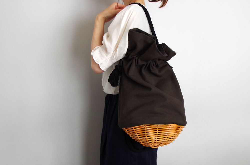 リュックの底が籐になっており、キャンバスと肩紐との組み合わせが、大人な印象で素敵です。