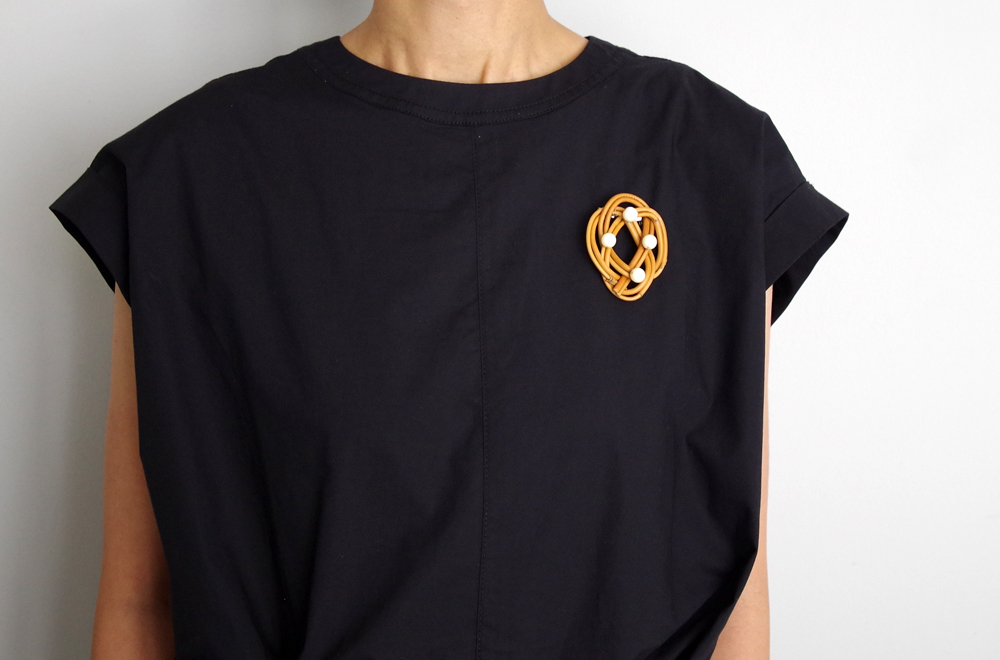 丁寧に編みこまれた籐に、丸いビーズが可愛らしいブローチです。