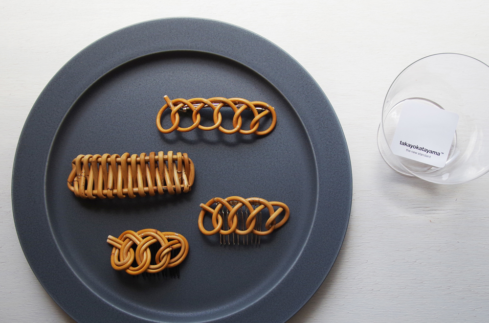 くるくるっとした、籐のバレッタたち。ディスプレイしている時の様子も、かわいいです。
