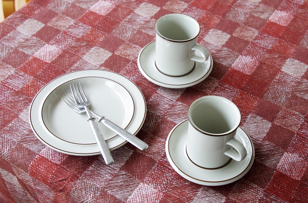 真っ白ではなく、グレーがかった素地にブラウンの細いラインのみのシンプルなデザイン。