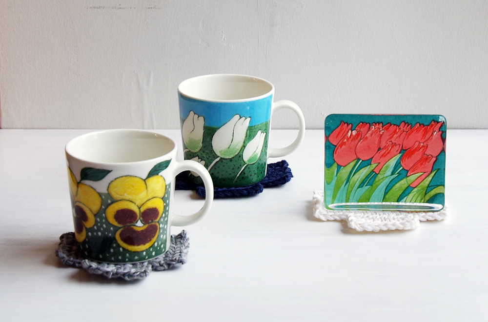 人気の高いフラワーシリーズのマグカップとチューリップのガラスオブジェです。