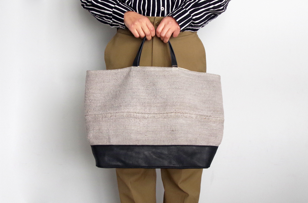 前回の個展にも登場していたリネントートバッグの大きなサイズ。
