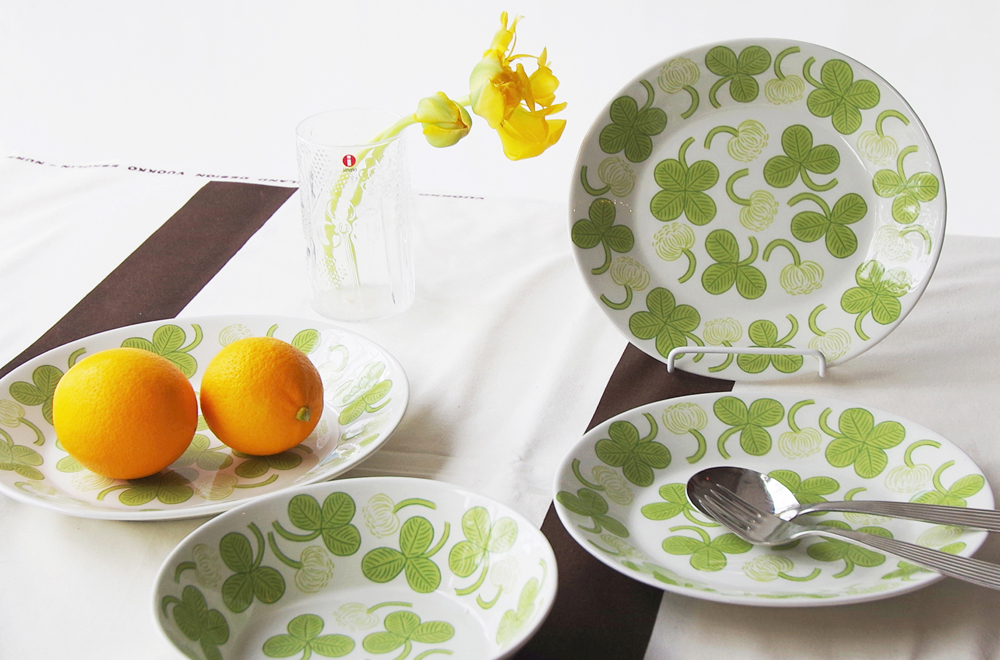 優しいグリーンで描かれた、クローバーとシロツメクサの可愛らしい「Apila(アピラ)」は、まもなく訪れる春を感じさせてくれるようなデザインです。