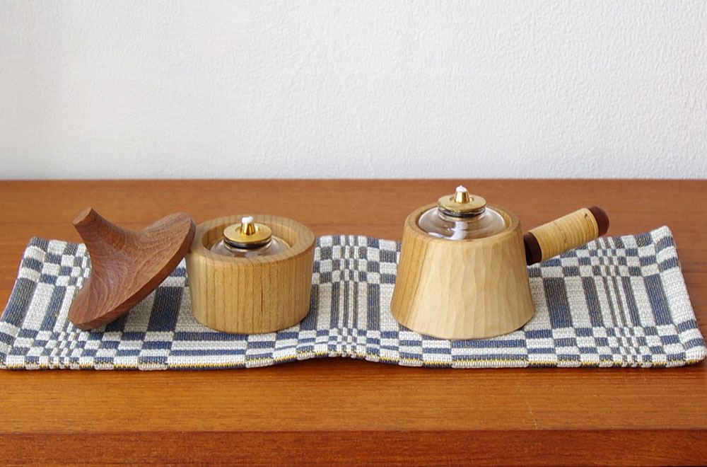 ガラスの容器にオイルを入れて火を付けるとキャンドルとは違う、柔らかな明かりを灯します。