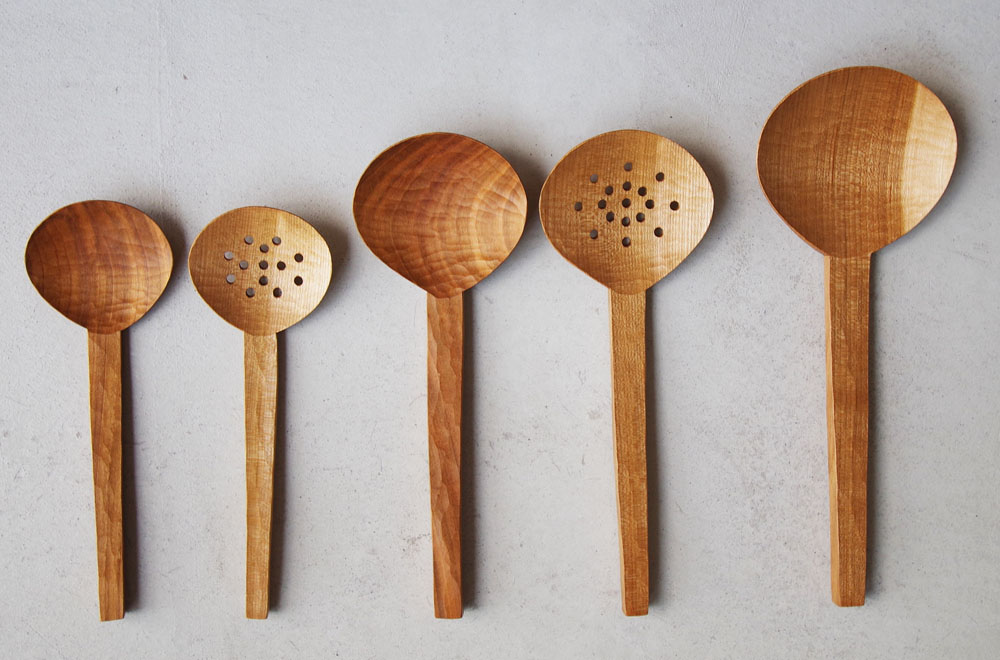 渡邊浩幸さんの個展では新入荷の「木杓子」も3サイズ、穴あき、穴なしがございます。