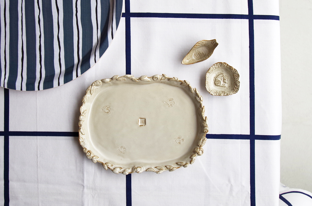 春らしい鳥をモチーフにした器。当店初登場は「鳥とブルーベリーの皿」です。