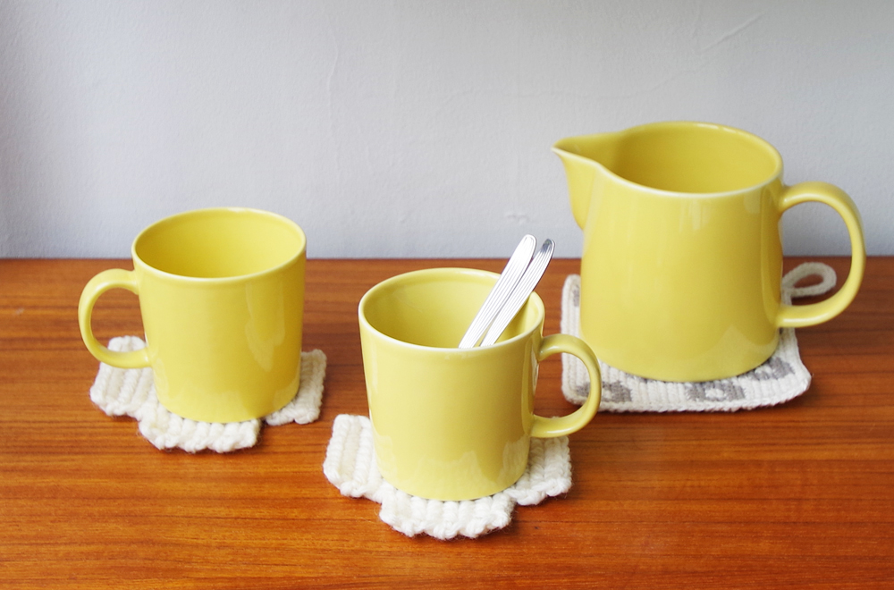 フィンランド「ARABIA(アラビア)」社で製造されていた「Teema(ティーマ)」シリーズ、人気のイエローカラー、マグとピッチャーをオンラインショップへ掲載しました。